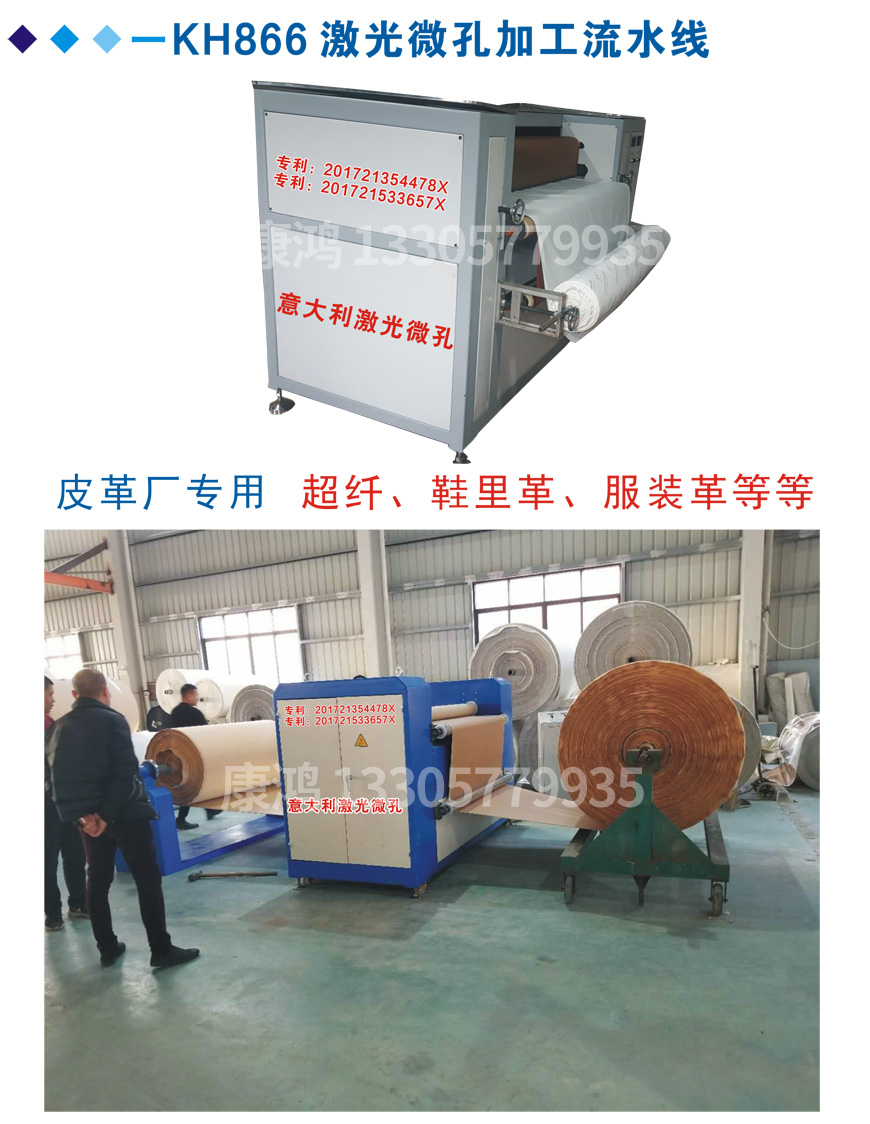 康鴻微孔技術(shù)在皮革、合成革制品及原材料的應(yīng)用,在近些年輕各方面科技人才不懈地努力和攻關(guān)下、目前已達(dá)到技術(shù)成熟;康鴻微孔科技運(yùn)用激光組合的原理,再結(jié)合幾類稀有貴金屬作為導(dǎo)體的作用下研發(fā)而成。康鴻微孔技術(shù)目前專業(yè)針對(duì)皮革、合成革制品及原材料行業(yè),經(jīng)此技術(shù)加工后的皮革、合成革制品及原材料,可達(dá)到透光、透水、透氣等效果。康鴻微孔技術(shù),目前使用于4MM以下的真皮二層、PU革、超纖革、太空革、移膜革、鞋里革等各類常用原材料。目前可根據(jù)不同需求,加工微孔孔經(jīng)0.001mm-0.50mm之間,可調(diào)微孔密度在每平方厘米20-100個(gè)孔之間。透氣度可達(dá)10%變化量之內(nèi)。走皮速度在1~10米/分鐘(可調(diào))。
